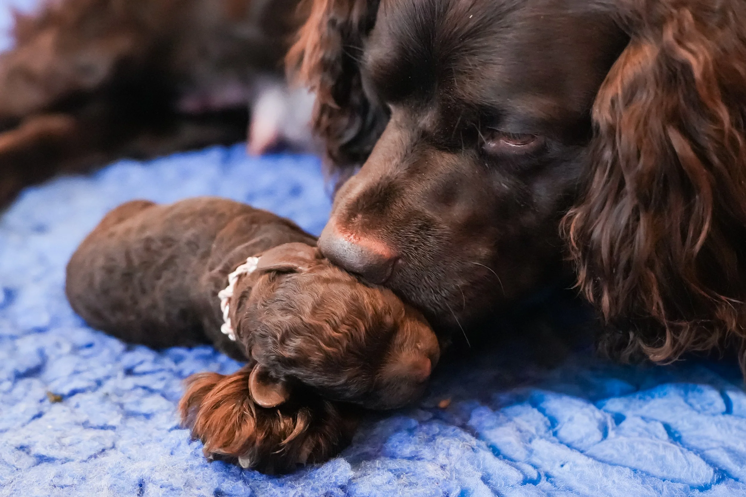 Day 7: Everyone is starting to settle down into a nice schedule. Nursing every 2-3 hours, Maya goes in as needed. The pups are getting real good at nursing. Starting to have that “pop corn” mvmts when sleeping. Pups are comando crawling with ease - looking very strong.
